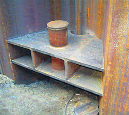 Several recessed bollards are fixed in a row, one above the other, on both sides of a ladder. They can be welded or bolted to the sheet pile wall. Bollards can be fitted to the top or side of a dolphin to provide mooring facilities.
