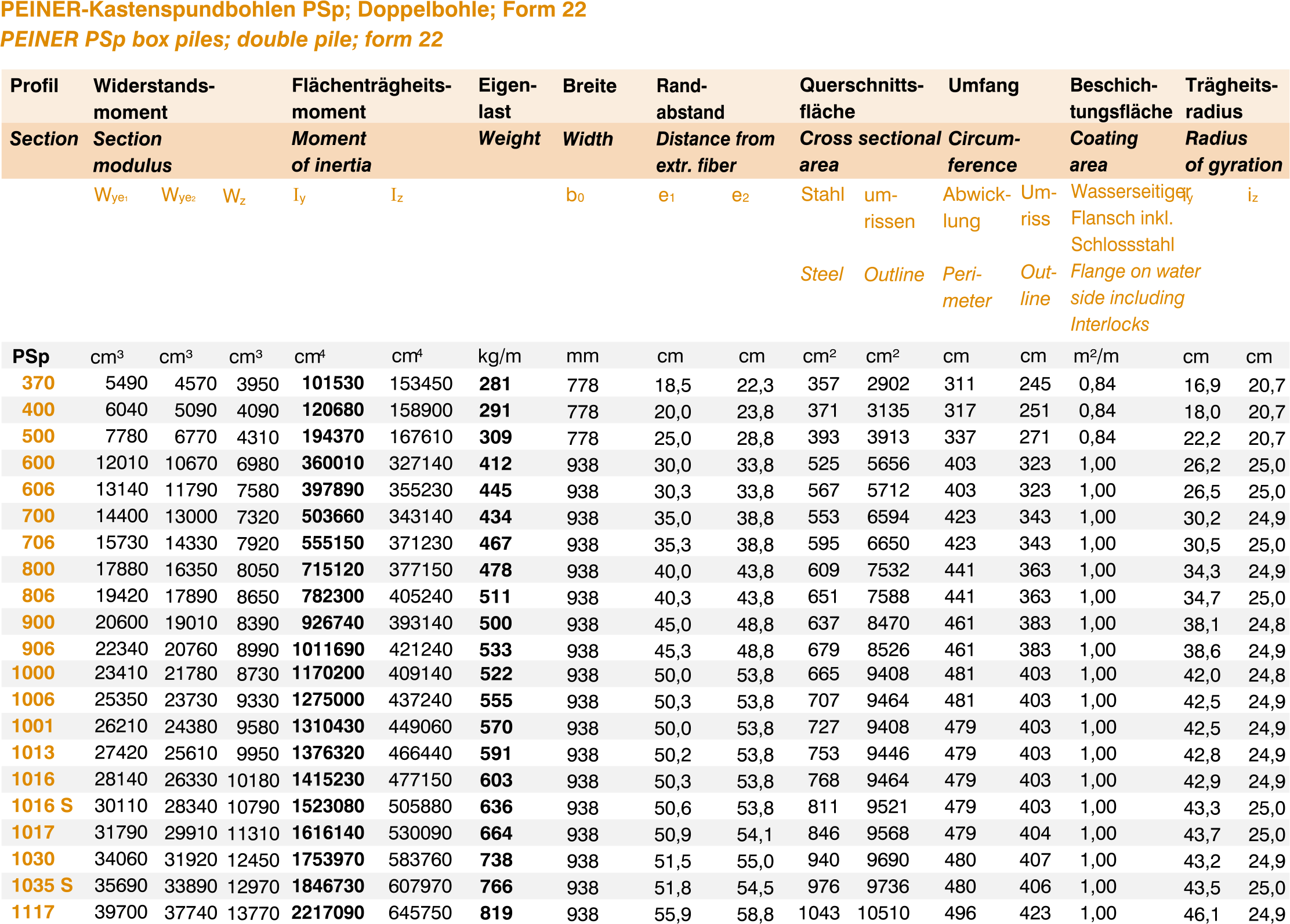 PEINER PSp box piles; double pile; form 22